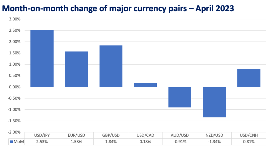 April 2023 was a generally weak month for the US dollar as it continued to be battered by a regional banking crisis that started in March with the collapse of Silicon Valley Bank (SVB). The tightening in bank credit conditions that followed had markets wondering whether the crisis was already doing the Federal Reserve’s job for it and if additional rate hikes were still necessary.