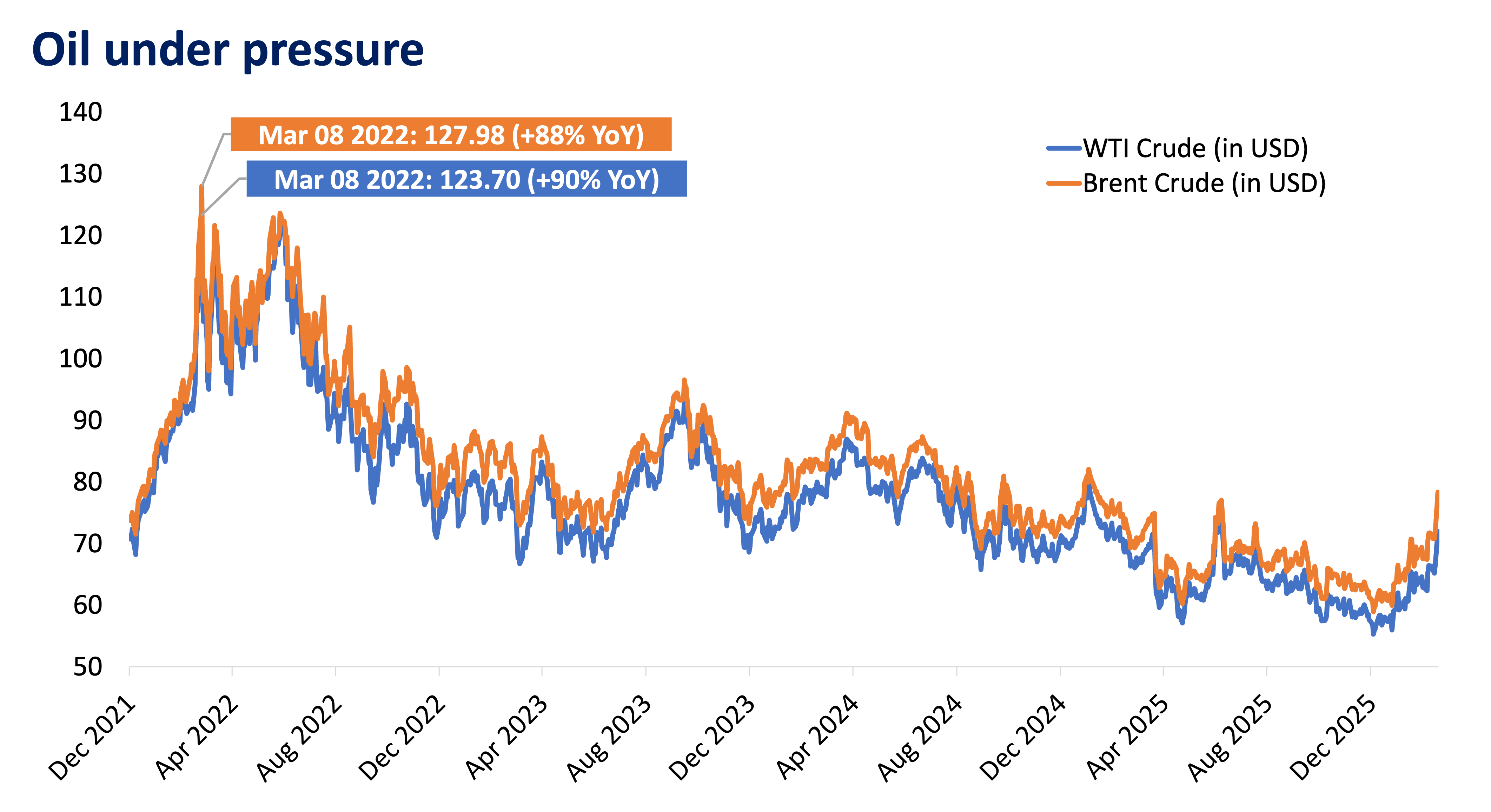 Global oil prices, which, we estimate, could reach USD 120 per barrel for Brent and USD 115 per barrel for WTI, will cascade to local pump prices and lead to second-round effects. And gi