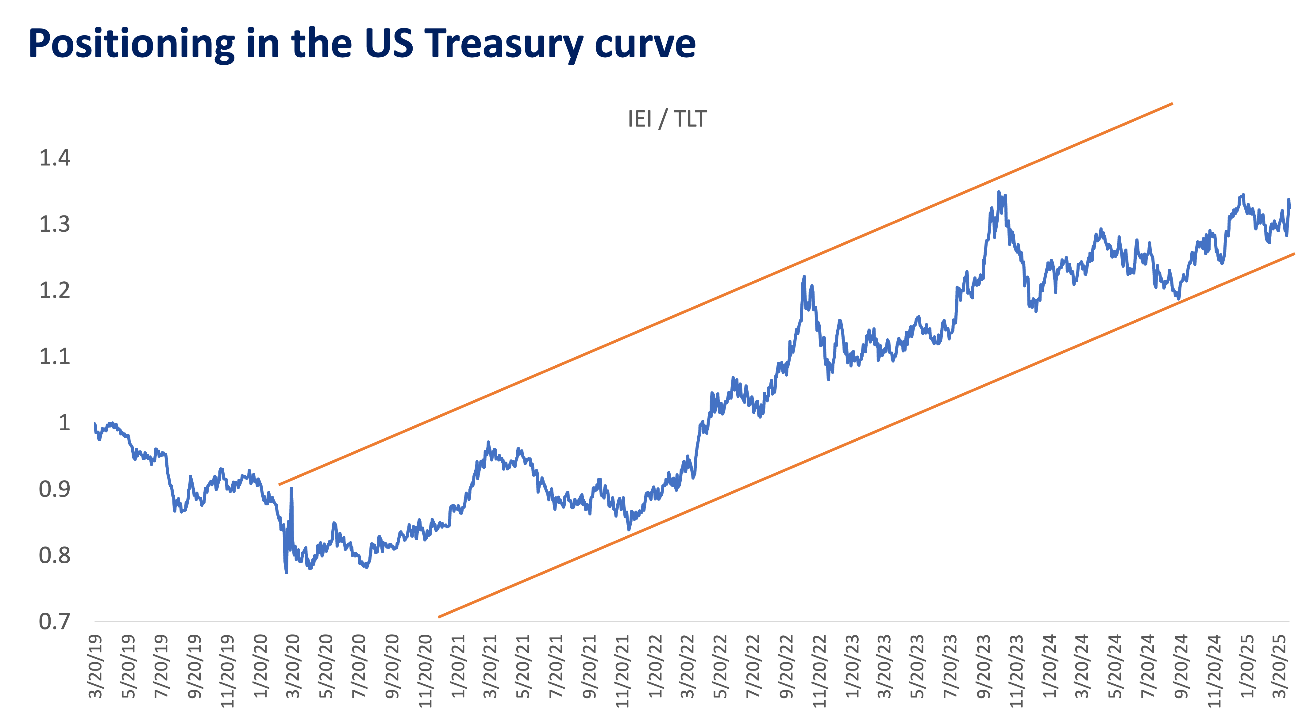 This has been the base case trend under the soft-landing scenario. Since the line remains in a solid uptrend, recession appears unlikely to be the base case and the belly bonds continue to provide better risk-return for now. The story can change if this uptrend breaks.